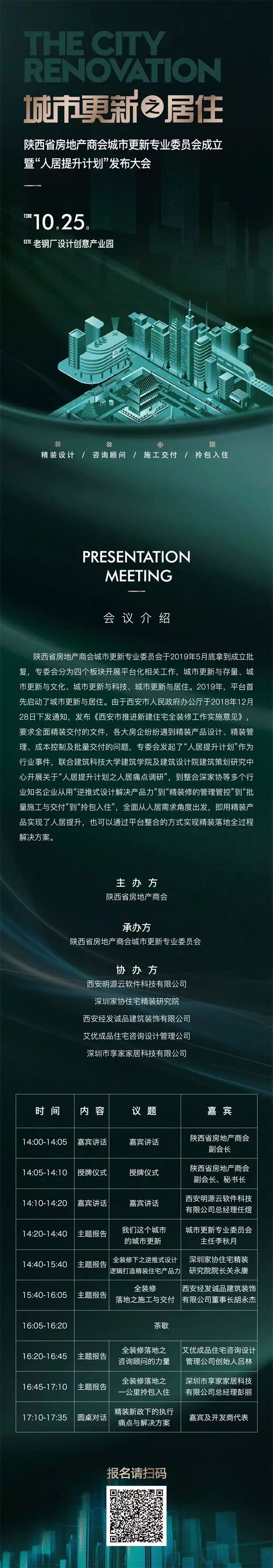 2019年,平台首先启动了城市更新与居住。10月25号即将召开成立大会,除了宣布陕西省房地产商会城市更新专业委员会成立,我们这次大会也会关于城市更新之居住的主题进行探讨。