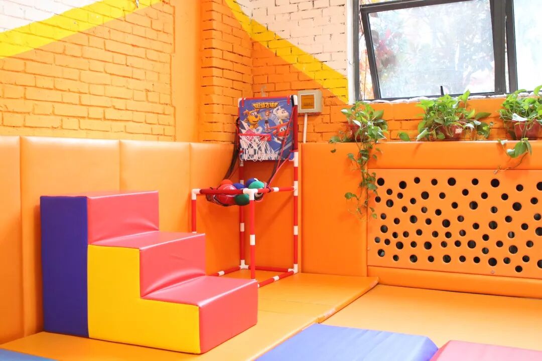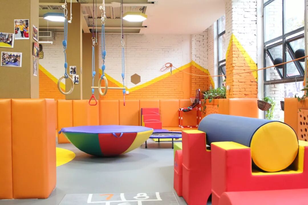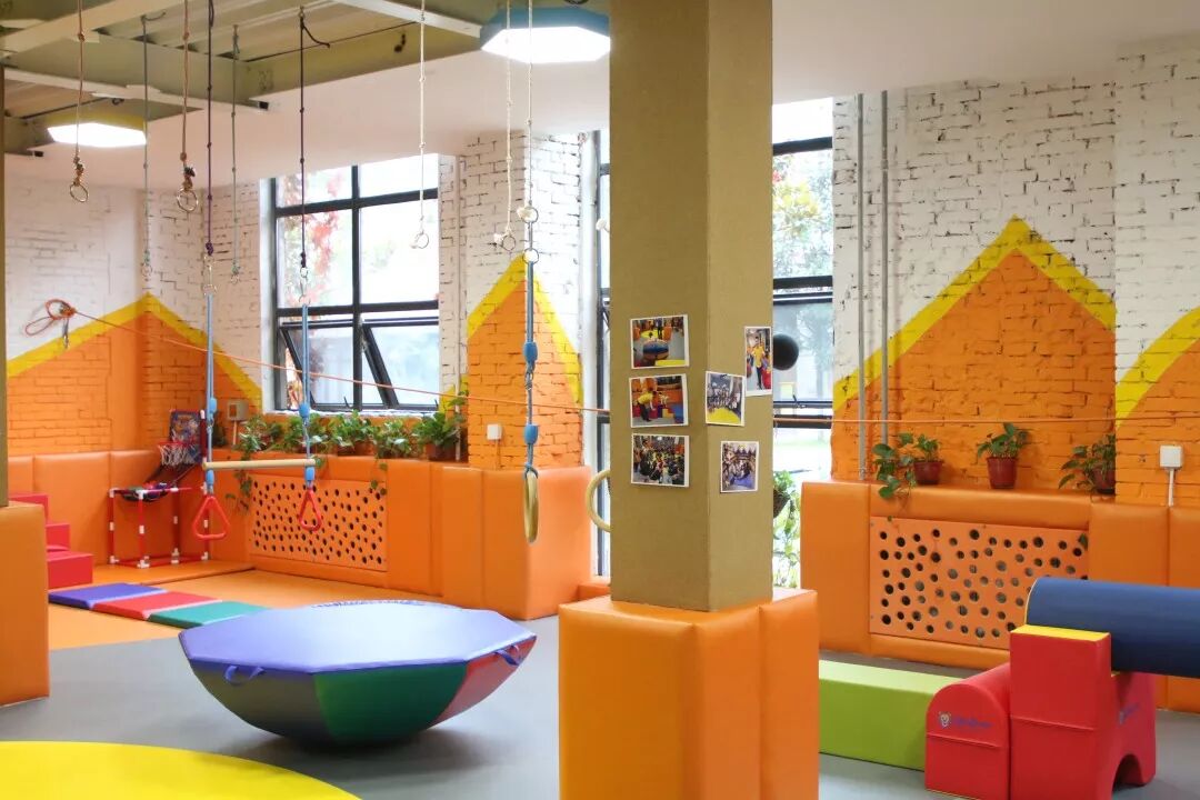 足够大的体能教室,有着各种色彩丰富的教具,超软的地垫,保证了孩子的安全!孩子们一到这里,可以撒开了玩啦!