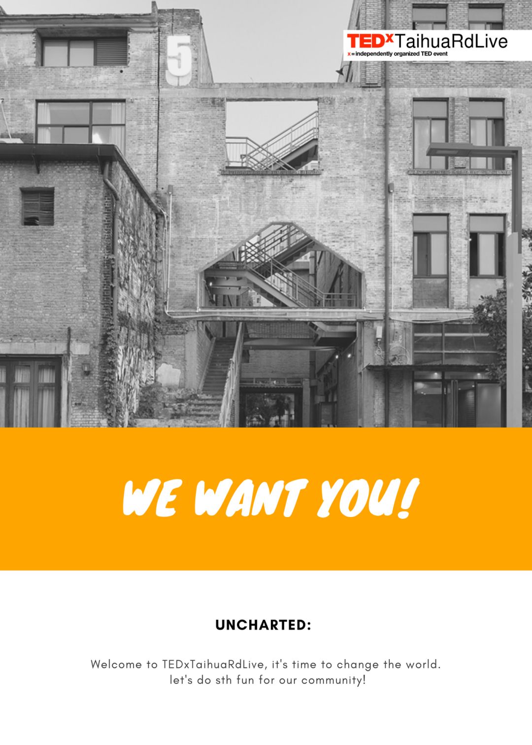 加入TEDxTaihuaRdLive,让我们一起传播创新思想!