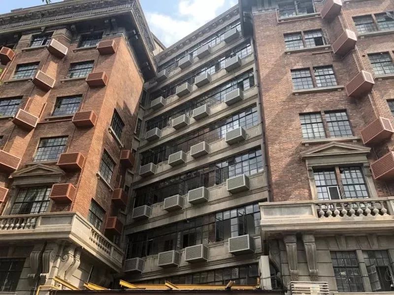 大楼从外立面的色泽、纹理都遵循着老建筑进行做旧,不仔细看,根本分辨不出前后的差距。